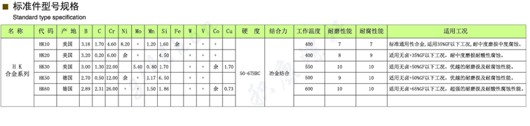 HK10、铁基合金、司太立、卡斯特林